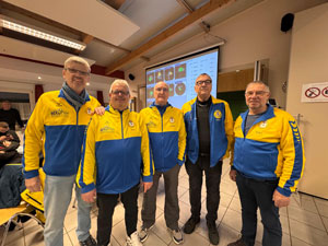 Die Antwort gaben die drei dann selbst. Denn aufgrund der Ausgeglichenheit des gesamten Brühler Teams bogen wir schon frühzeitig auf die Siegerstraße ein. Zwar gab Paul mit 299 Ringen seinen Punkt an Ulrich Pelzer (300) ab, aber unser Schnellschütze Werner hatte wieder einen gelungenen Tag. Er legte innerhalb von elf Minuten 300 Ringe vor, zog aber trotzdem wieder einmal mit Friedbert Mäurer ins anschließende Stechen ein, das er mit dem vierten Schuss für sich entschied. Helmut Netzer mit 300 gegen Hubert Lenoir (296) machte es weniger spannend und auch Uli Hennemann brachte seine 299 Ringe gegen Ingrid Bronneberg über die Runden. Zu guter Letzt setzte Hubert Mörsch die vierte Kirsche auf die Gewinnertorte und sorgte so für den 4:1 Endstand.